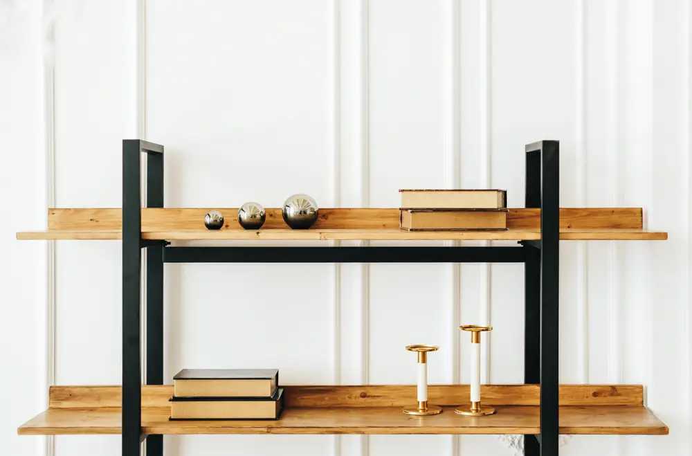 Une bibliothèque industrielle peut autant embarquer des éléments décoratifs industriels. On peut penser à des grilles métalliques, des panneaux perforés, des cadres en acier apparent ou des rivets décoratifs. Cependant, pour rester équilibrés et ne pas surcharger visuellement la structure, ils doivent être équilibrés.